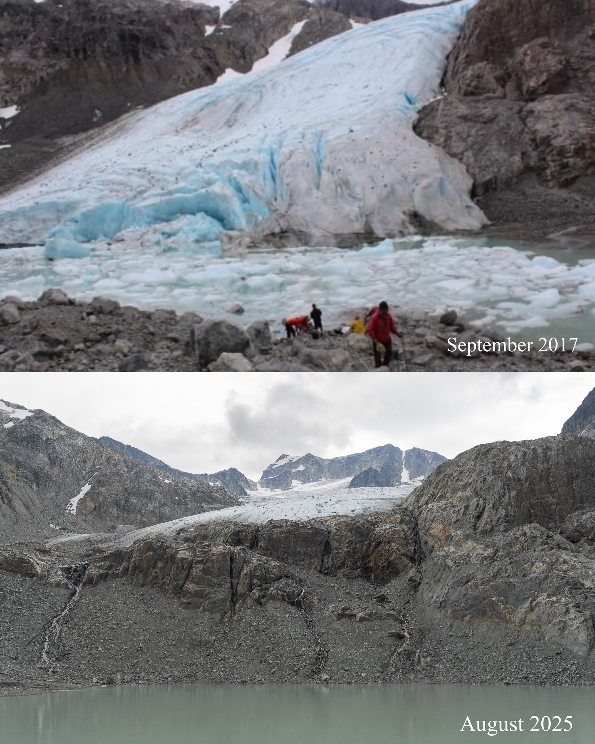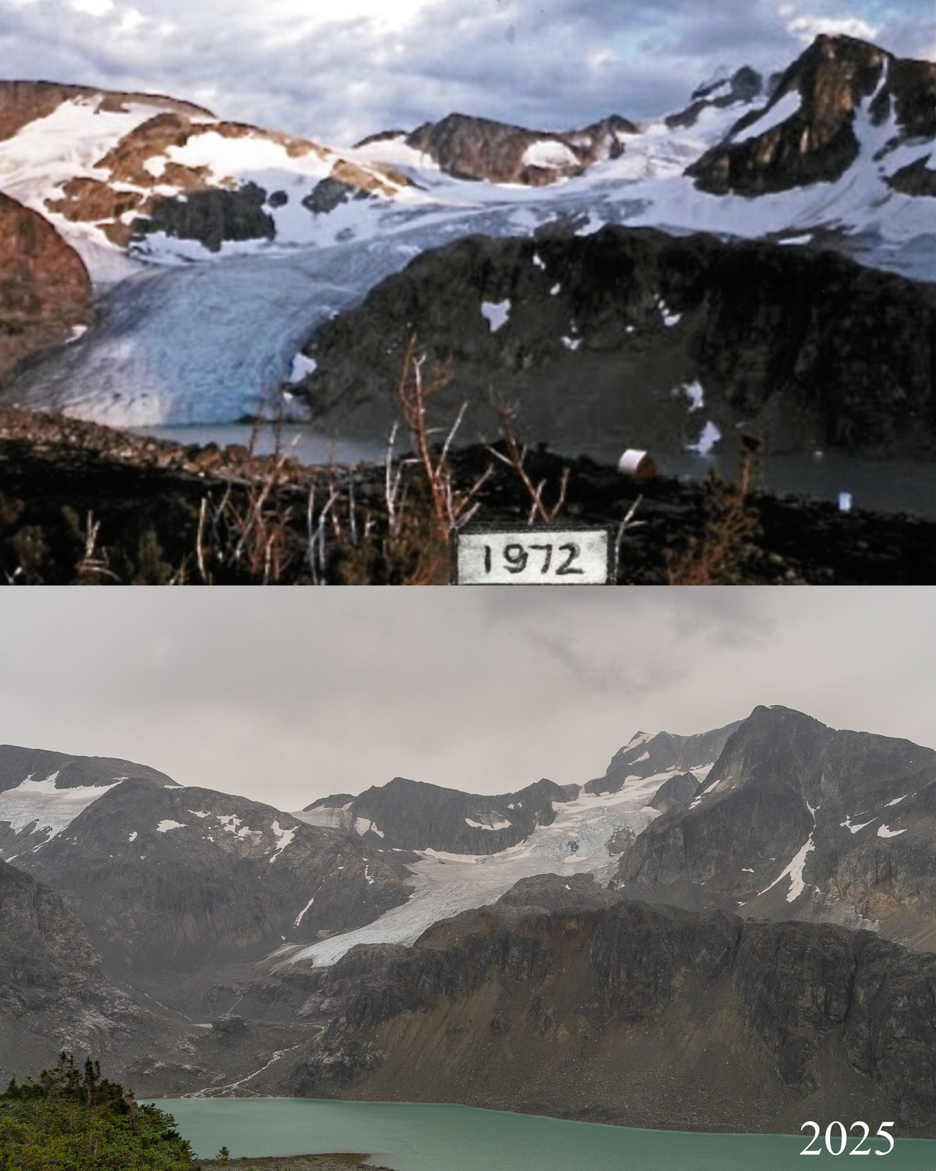 For 52 years, the Wedgemount Glacier Monitoring Project has documented the retreat of the Wedgemount Glacier—located on the highest peak in Garibaldi Provincial Park, in Whistler, BC. Since 1972, the glacier has receded over 700 metres (averaging 14 metres per year)